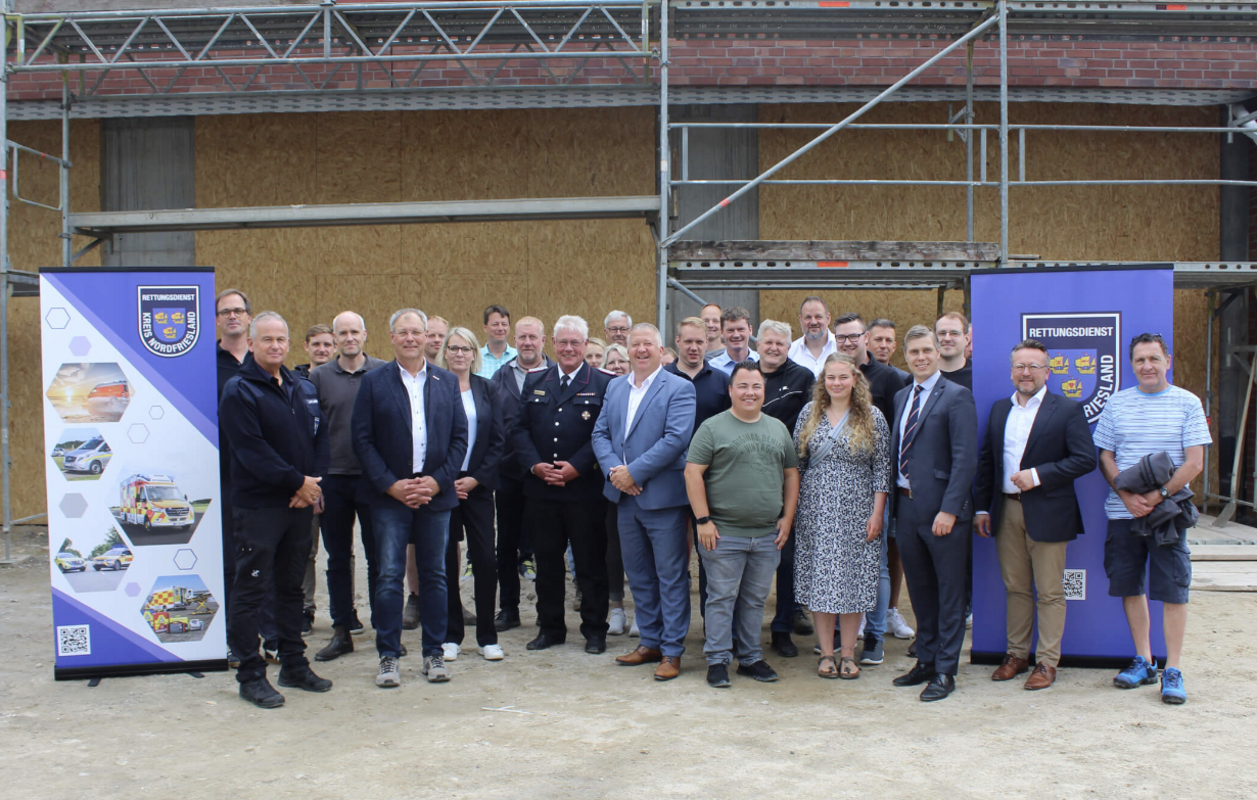 Der Landrat danke in seinem Grußwort zum „Dichtfest“ allen beteiligten Planern, Architekten und Handwerksbetrieben für ihre Expertise und ihren Fleiß und wünschte einen guten weiteren Bauverlauf. Gerichtet an die Angehörigen des Rettungsdienstes sagte Lorenzen: „Mögen unsere Kolleginnen und Kollegen immer er gesund aus ihre Einsätzen heimkehren und unseren Bürgerinnen und Bürgern eine bestmögliche Notfallversorgung zuteilwerden lassen.“